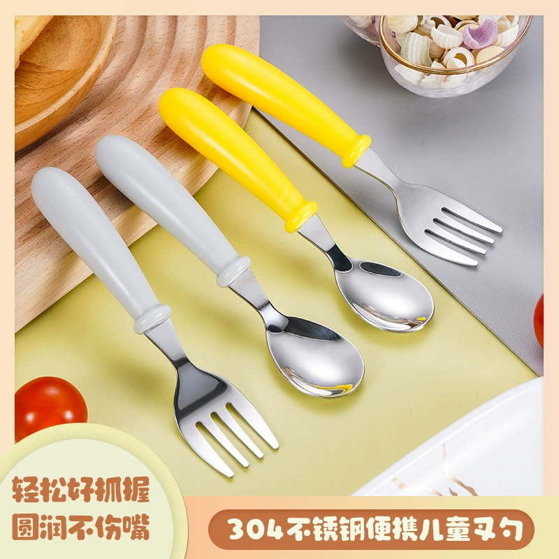 304不锈钢儿童便携餐具套装卡通叉勺子辅食训练学习吃饭喂养勺叉