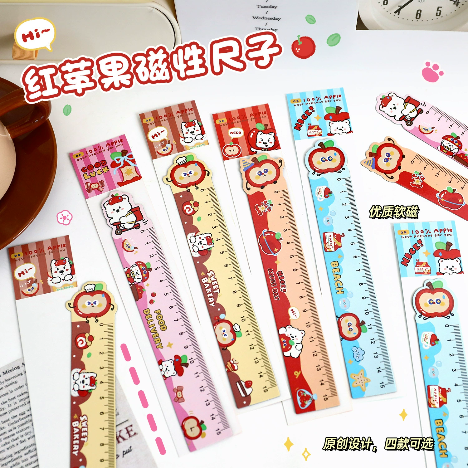 苹果多多磁性直尺可爱多功能磁性书签尺卡通学生便携软磁尺子直尺