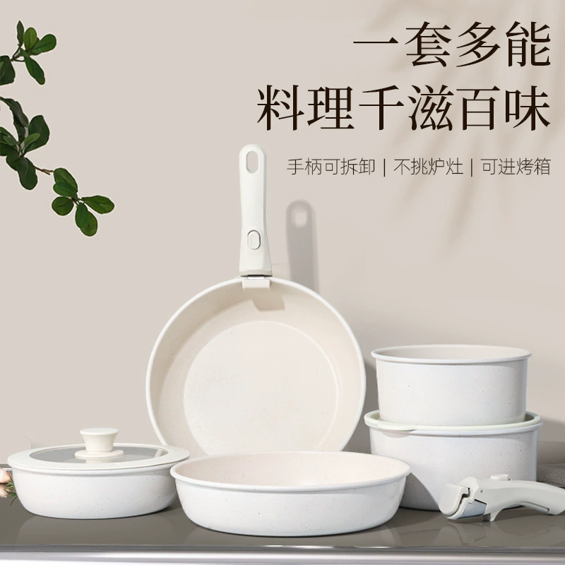 可拆卸手柄五件套锅具户外炒锅汤锅煎锅家用套装高颜值不粘锅