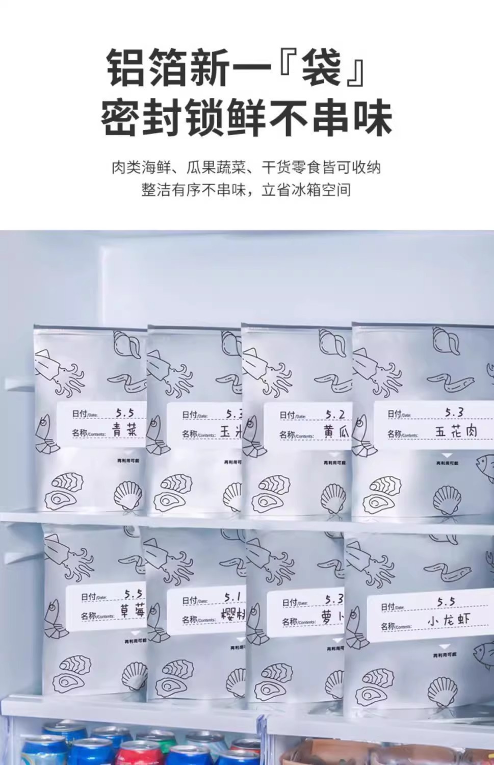 铝箔保鲜袋密封袋家用冰箱食物冷冻肉专用食品级保鲜密实自封袋
