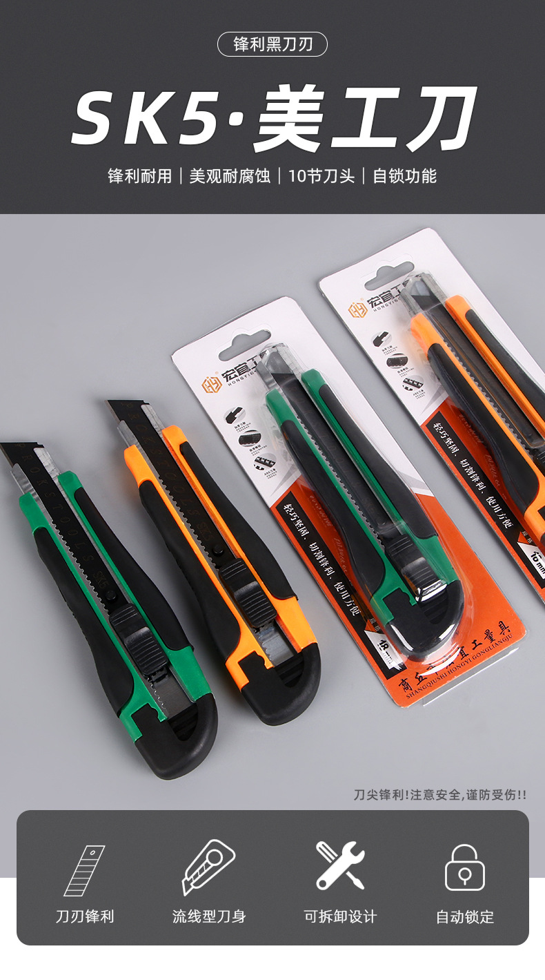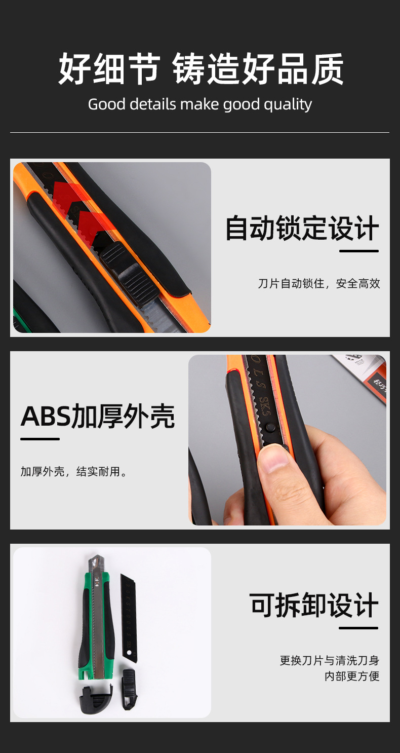 吸卡装美工刀大号18mm拆快递开箱刀黑刃锋利耐用壁纸刀裁纸刀