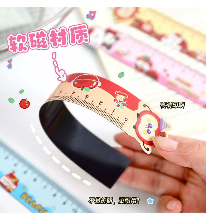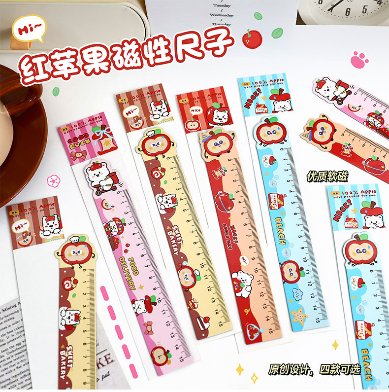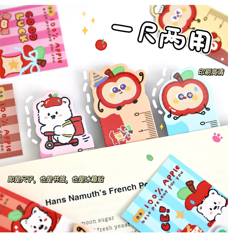 苹果多多磁性直尺可爱多功能磁性书签尺卡通学生便携软磁尺子直尺