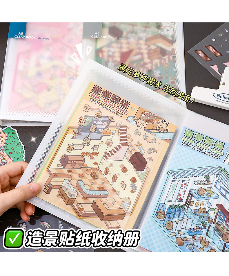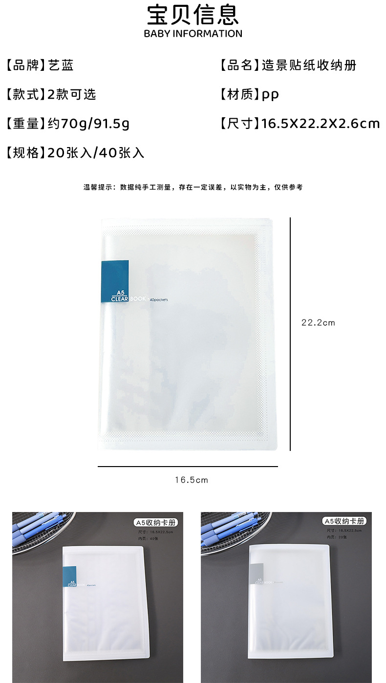 ins风A5卡册简约透明资料册造景贴纸收纳册办公室文件票据收纳夹