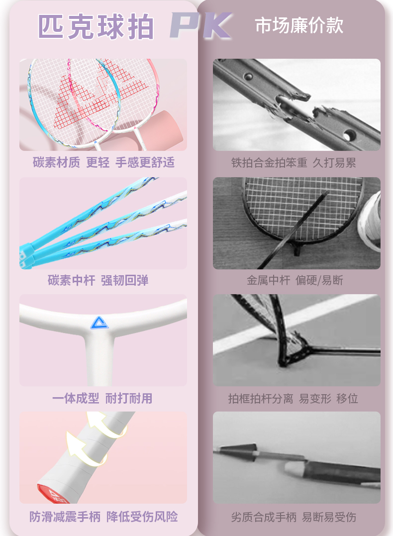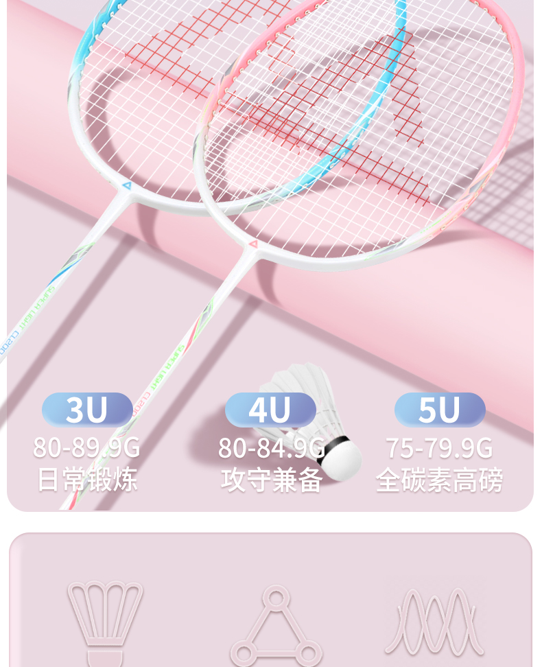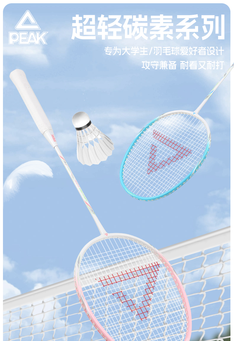 peak匹克羽毛球拍正品全碳素超轻成人儿童耐打双拍套装