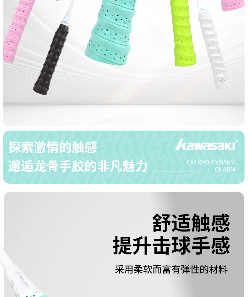 Kawasaki川崎羽毛球拍手胶龙骨吸汗带专业防滑吸汗网球手柄缠绕带