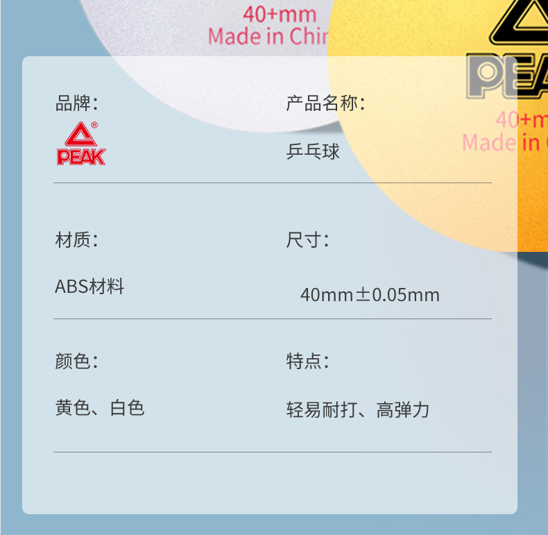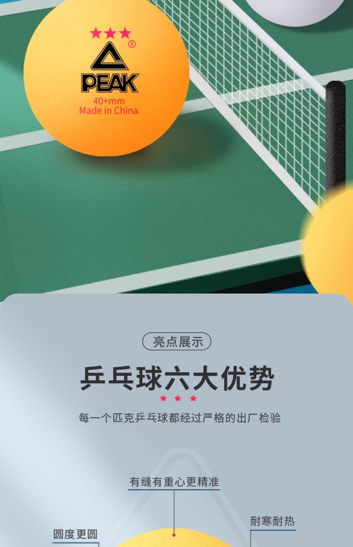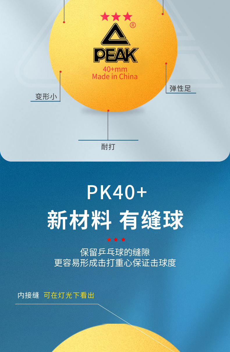 匹克正品三星级乒乓球高弹耐打球标准训练比赛用室内外40+专用球
