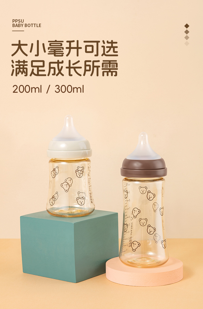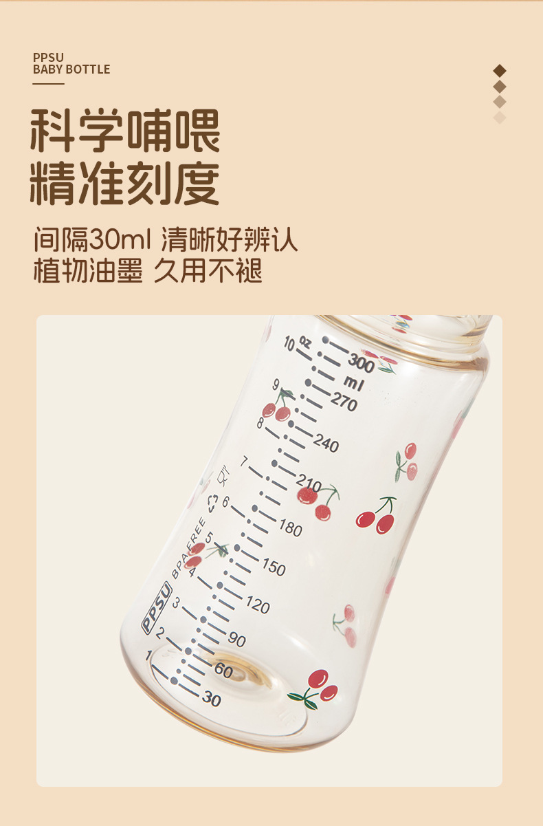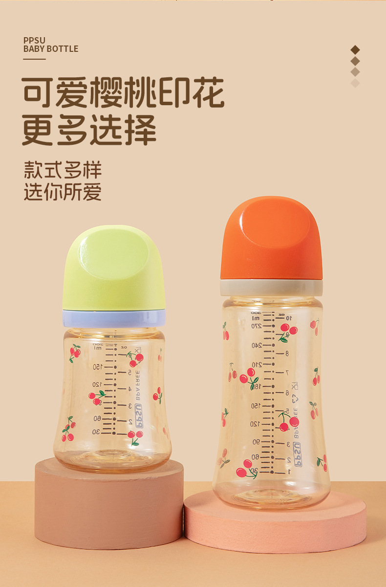 新生宝宝婴儿童喝牛奶瓶PPSU奶瓶小熊樱桃水杯宽口径耐摔
