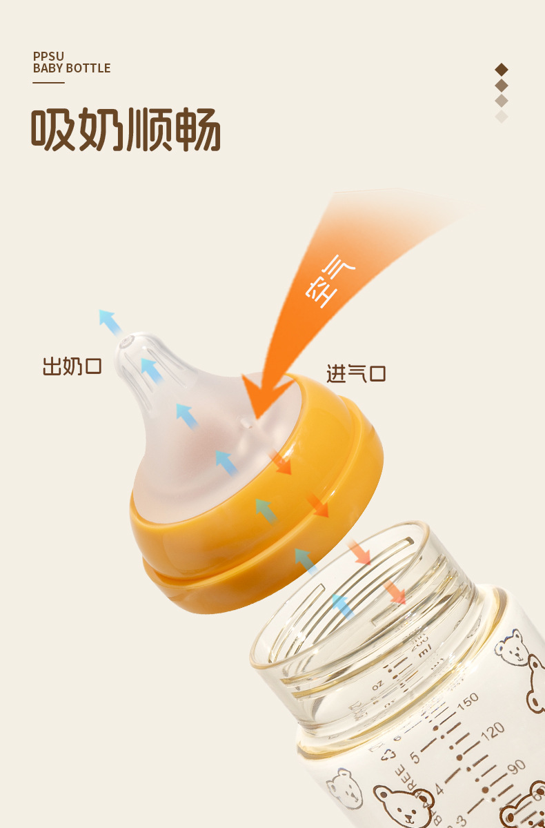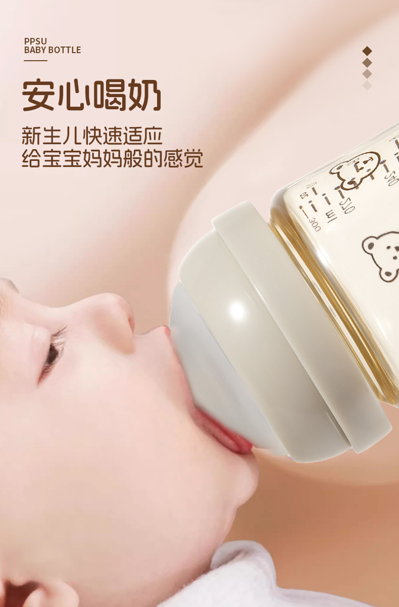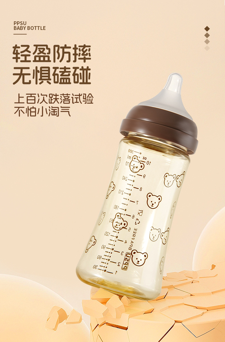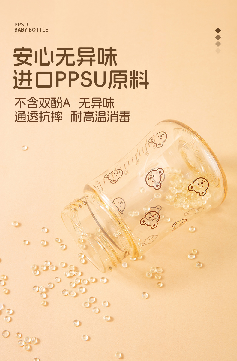 新生宝宝婴儿童喝牛奶瓶PPSU奶瓶小熊樱桃水杯宽口径耐摔