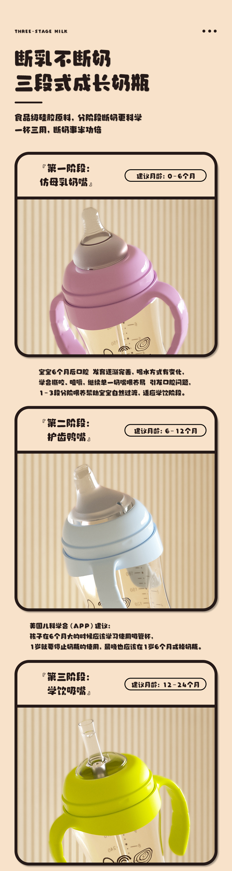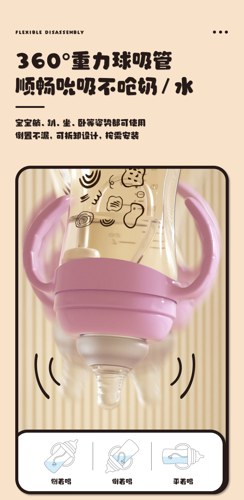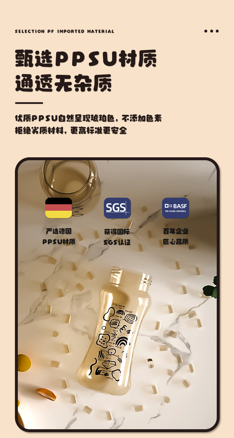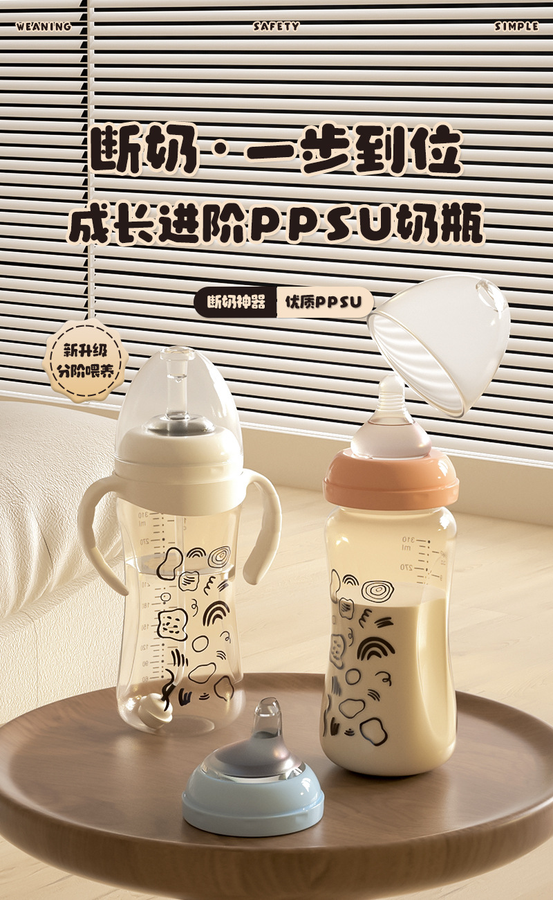 宽口径PPSU耐摔奶瓶大宝宝鸭嘴吸管杯奶瓶一瓶三用 1岁以上