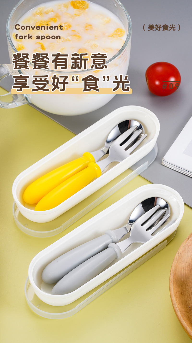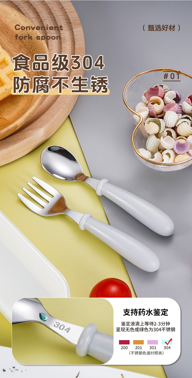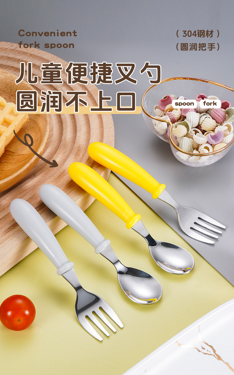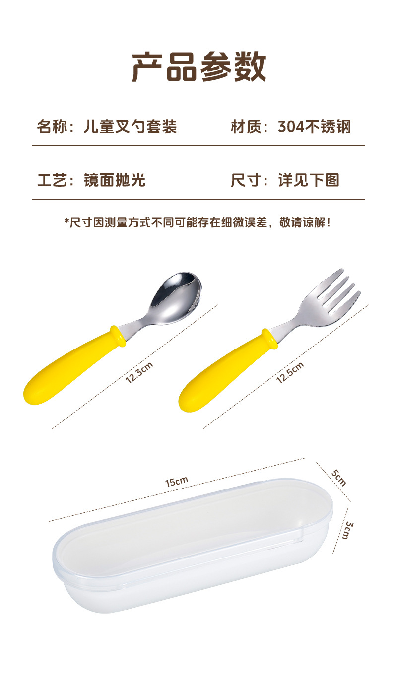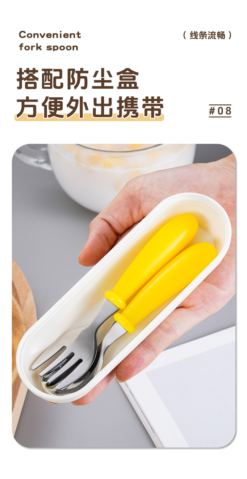 304不锈钢儿童便携餐具套装卡通叉勺子辅食训练学习吃饭喂养勺叉