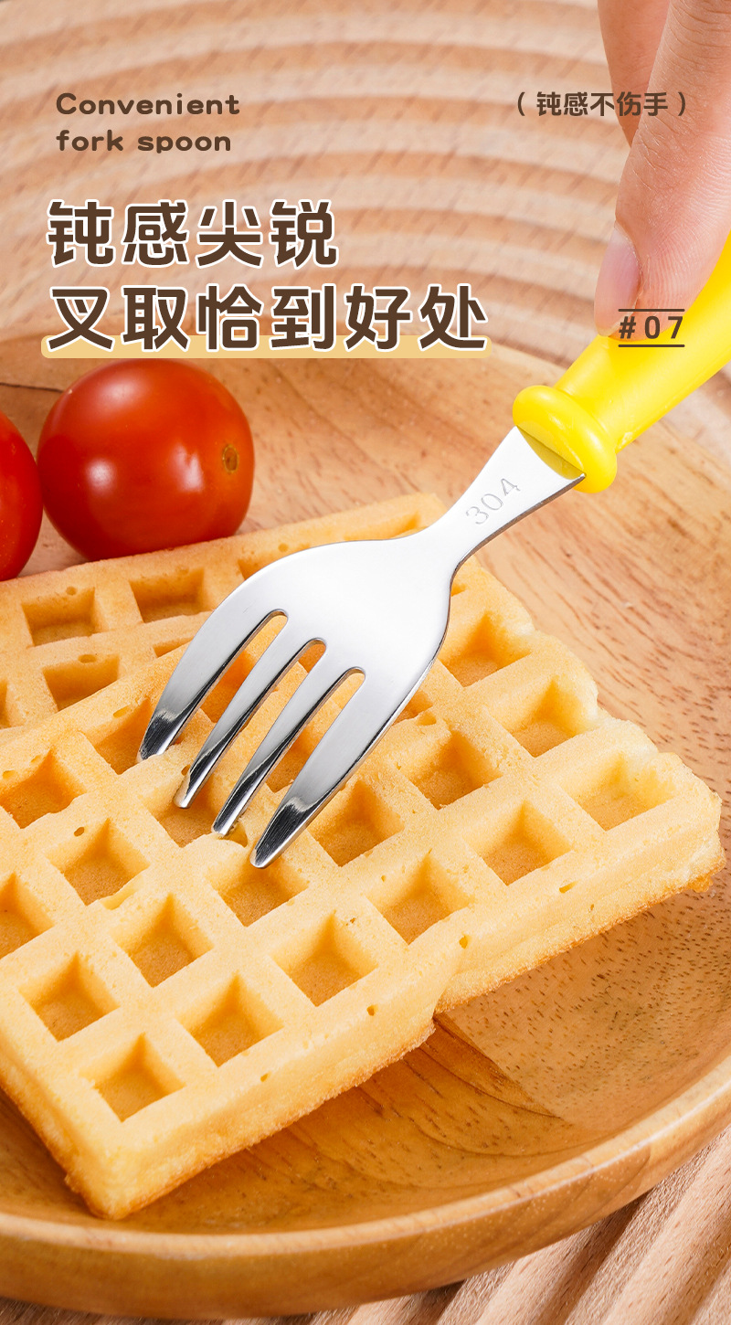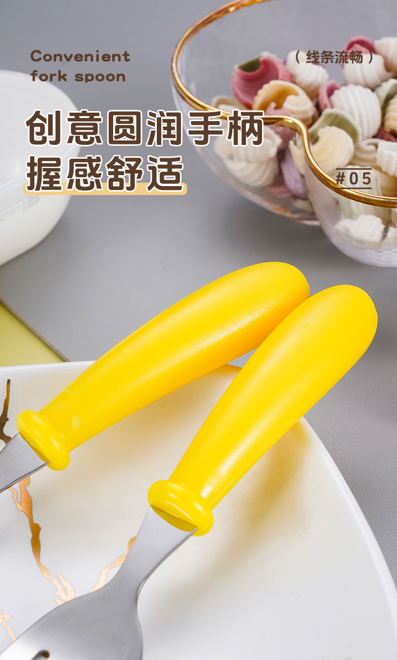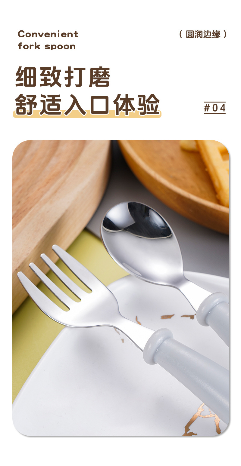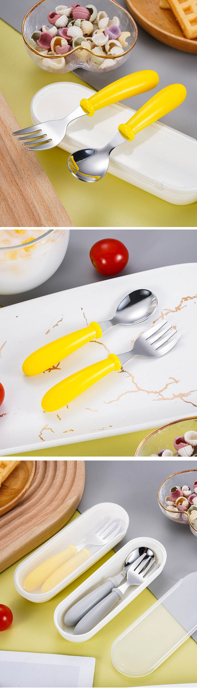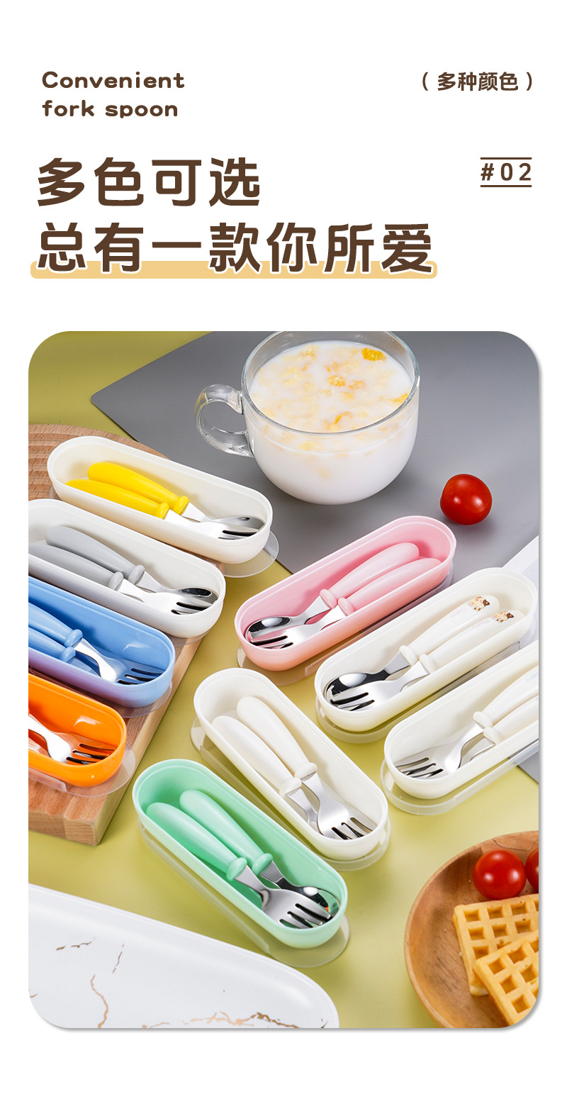 304不锈钢儿童便携餐具套装卡通叉勺子辅食训练学习吃饭喂养勺叉