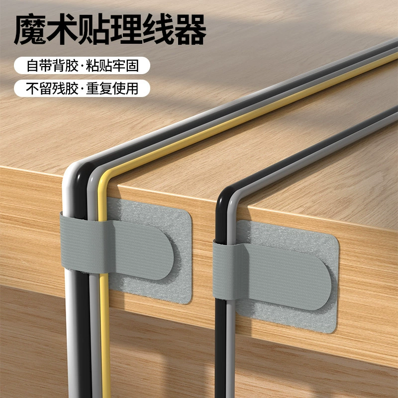 电线固定器自粘卡扣魔术贴办公桌电源线束线走线免打孔理线扎带