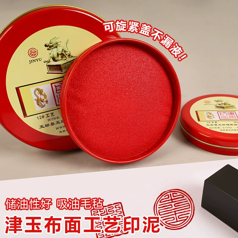 铁盒装快干红色印泥办公专用3#6#12#布面工艺按手印盖章印台